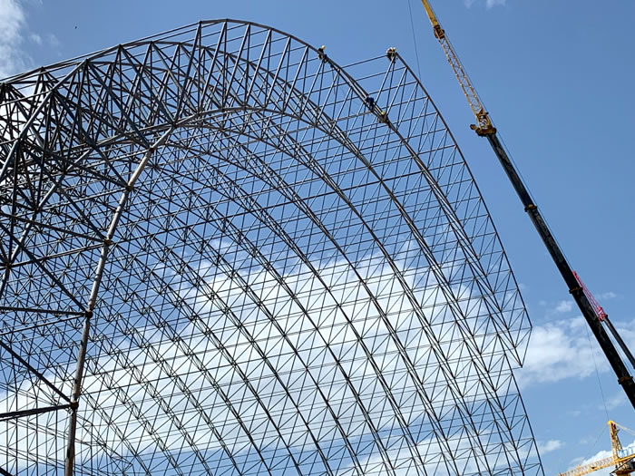 (2)网架加工前应对现场尺寸进行复测,确认无误后方可进行加工、安装;网架制作、运输、安装应遵守《空间网格结构技术规程》JGJ7-2010、《钢网架湛江螺栓球节点》JG/T 10-2009、《钢网架湛江螺栓球节点用高强度螺栓》 GB/T 16939-2016、《湛江钢结构湛江工程湛江施工规范》 GB50755-2012、《湛江钢结构湛江工程施工质量验收标准》 GB50205-2020。